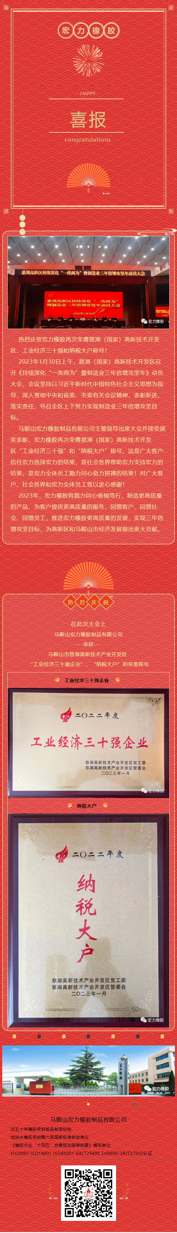 熱烈慶賀宏力橡膠再次榮膺慈湖(國家)高新技術(shù)開發(fā)區(qū)、工業(yè)經(jīng)濟三十強和納稅大戶稱號!